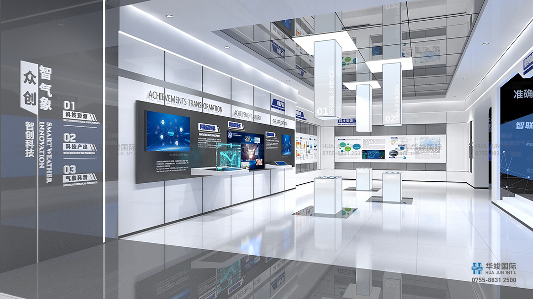江西“智氣象”展廳項(xiàng)目由華竣國際執(zhí)行整體設(shè)計(jì)施工,華竣國際以創(chuàng)新的智慧科技展廳設(shè)計(jì)理念,融合互聯(lián)網(wǎng)+思維,順應(yīng)科技化趨勢,結(jié)合互動多媒體、數(shù)字影片、數(shù)字沙盤、虛擬現(xiàn)實(shí)等科技展項(xiàng),打造震撼視覺的高品質(zhì)科技展廳。