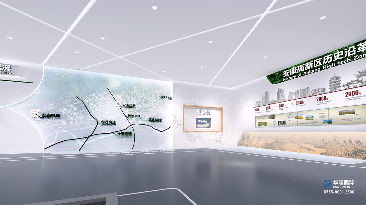 新安康門戶園區(qū)規(guī)劃館設(shè)計(jì)項(xiàng)目由華竣數(shù)創(chuàng)執(zhí)行整體設(shè)計(jì)施工,華竣數(shù)創(chuàng)規(guī)劃館設(shè)計(jì)部以“智慧城市展廳”為起點(diǎn);結(jié)合數(shù)字沙盤、數(shù)字影院、虛擬現(xiàn)實(shí)、互動(dòng)多媒體等技術(shù),打造承載城市歷史、展現(xiàn)城市現(xiàn)在、展望城市未來的智慧規(guī)劃館。