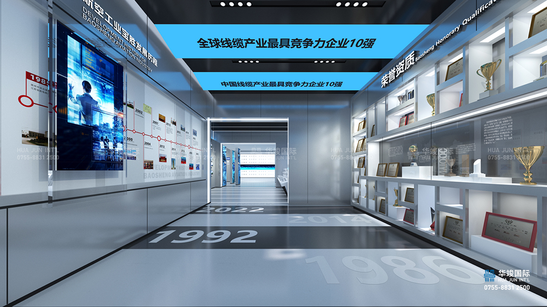 寶勝科技園區展館設計項目是由華竣出品的優秀作品,華竣以創新的智慧展廳設計理念,融合互聯網+思維,順應科技化趨勢,結合互動多媒體、數字影片、數字沙盤、虛擬現實等科技展項,打造震撼視覺的高品質科技展廳。
