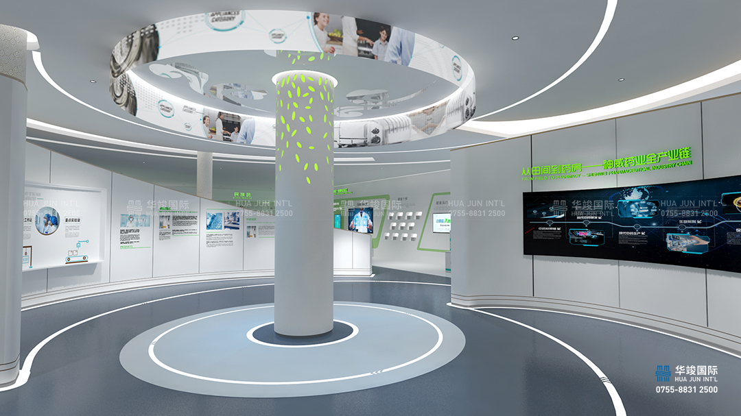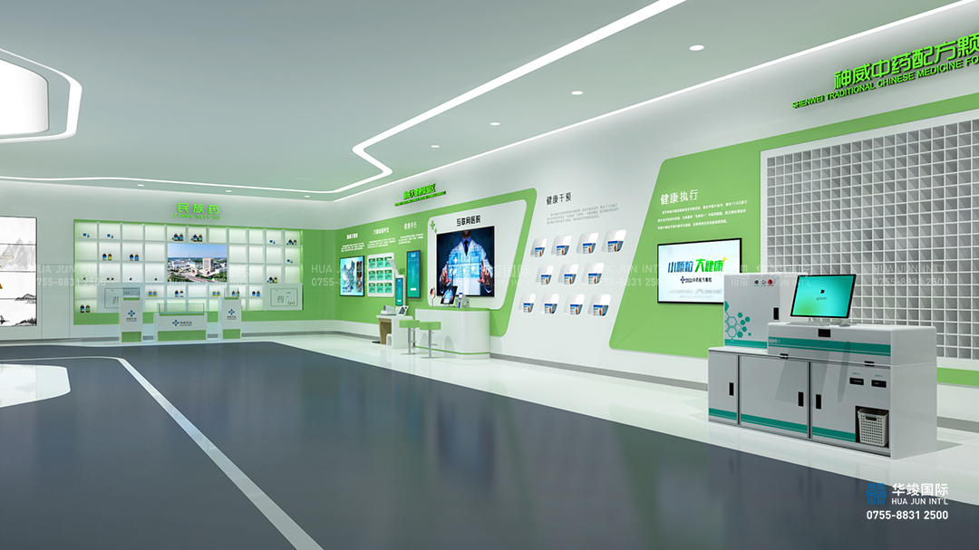 華竣國際為神威藥業量身打造的展館以深厚的中醫文化底蘊貫穿整館,以經典元素為載體展示中醫學文化的源遠流長,將傳承、創新、多元等現代基因加以融合,建立一個國際性、現代化、科技型的中醫藥展館,運用先進的科技手段承載內容,推動現代中醫藥品牌的發展,推進健康產業。