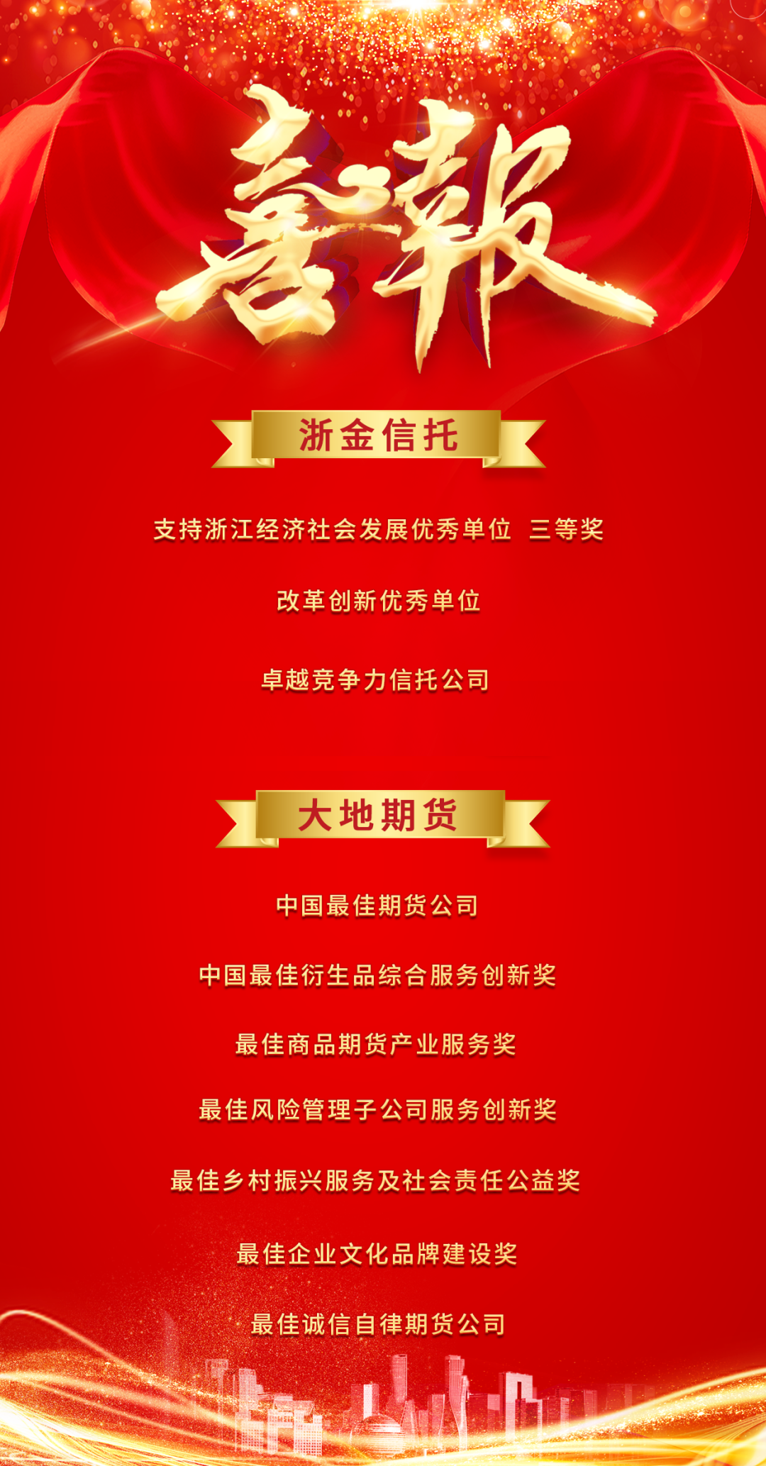 日前,浙江東方旗下浙金信托、大地期貨憑借在專業(yè)領(lǐng)域和社會責(zé)任等方面的積極成效,榮獲省內(nèi)、業(yè)內(nèi)多項重量級的獎項。